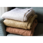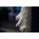 A cream-colored ivory mohair throw brings a touch of elegance and warmth to any living space, combining softness with a neutral palette that complements a wide range of decors.